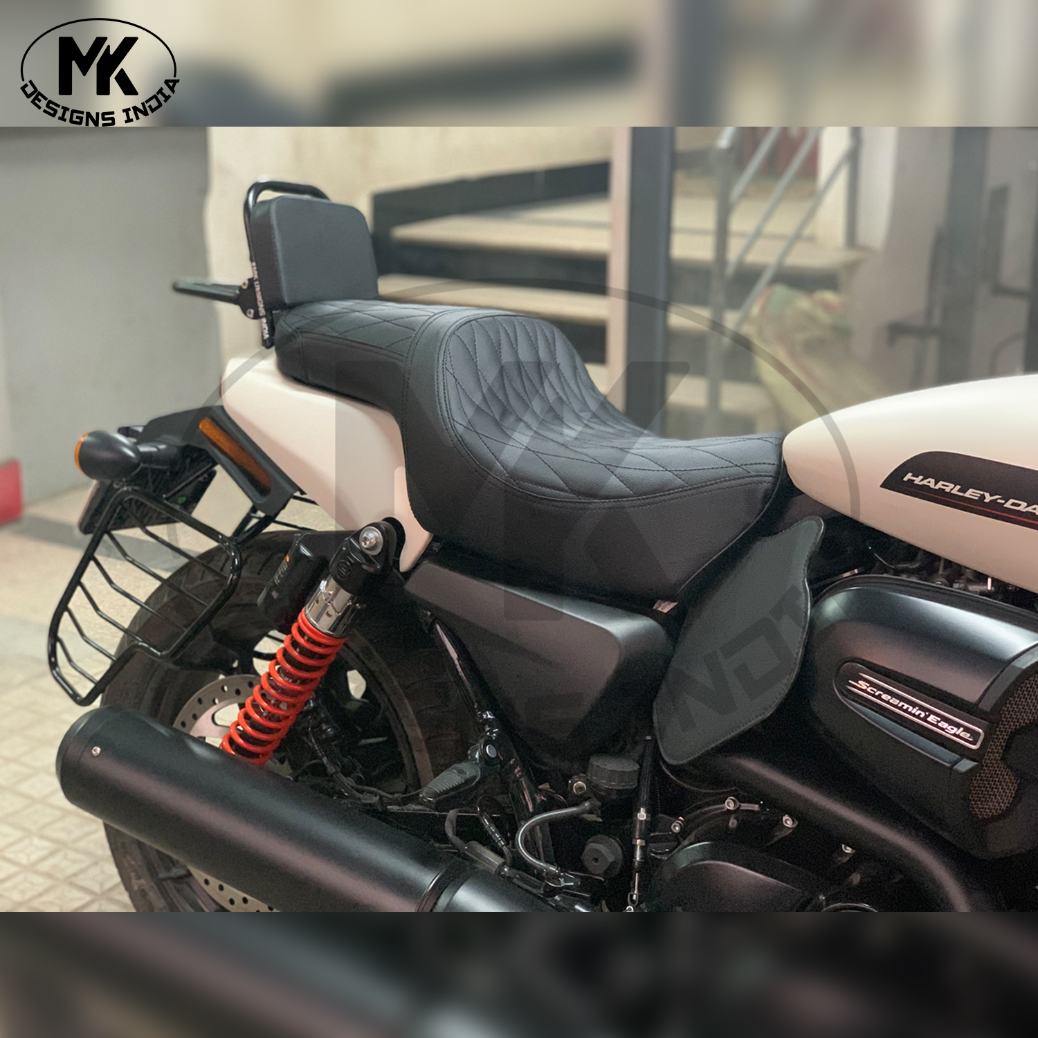 ‘- The customised backrest designed by us has an attractive and irresistible sleek design and provides an extremely comfortable back support which is also snug for lower back. The advantage of detachable Carrier is it can be done/undone within minutes  .It is ideal for long rides